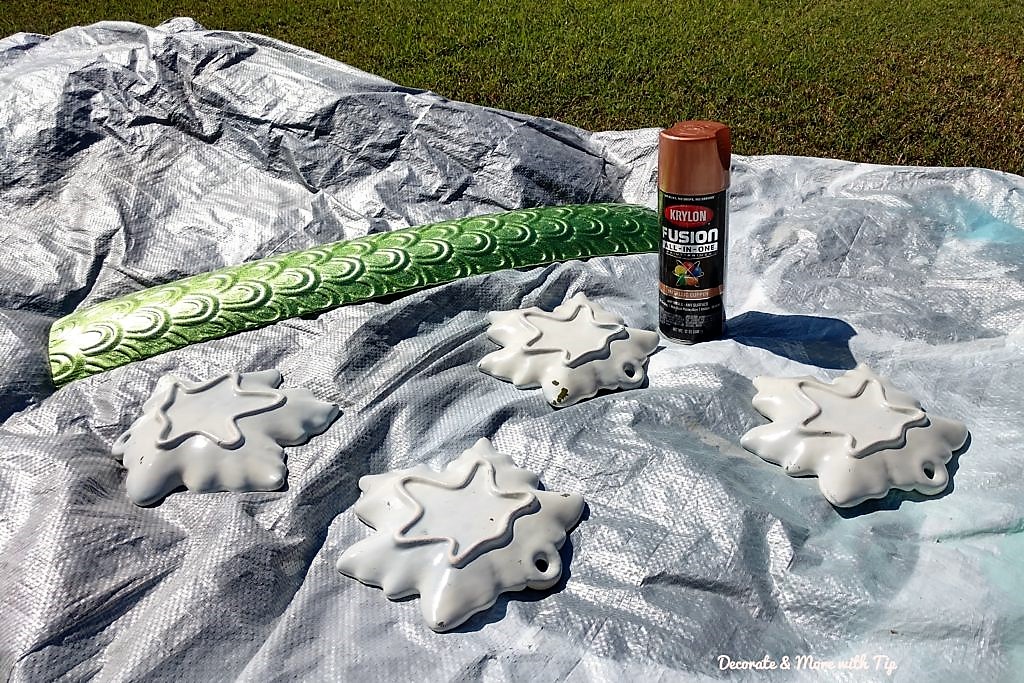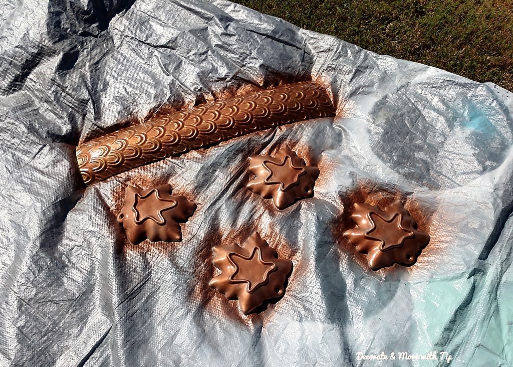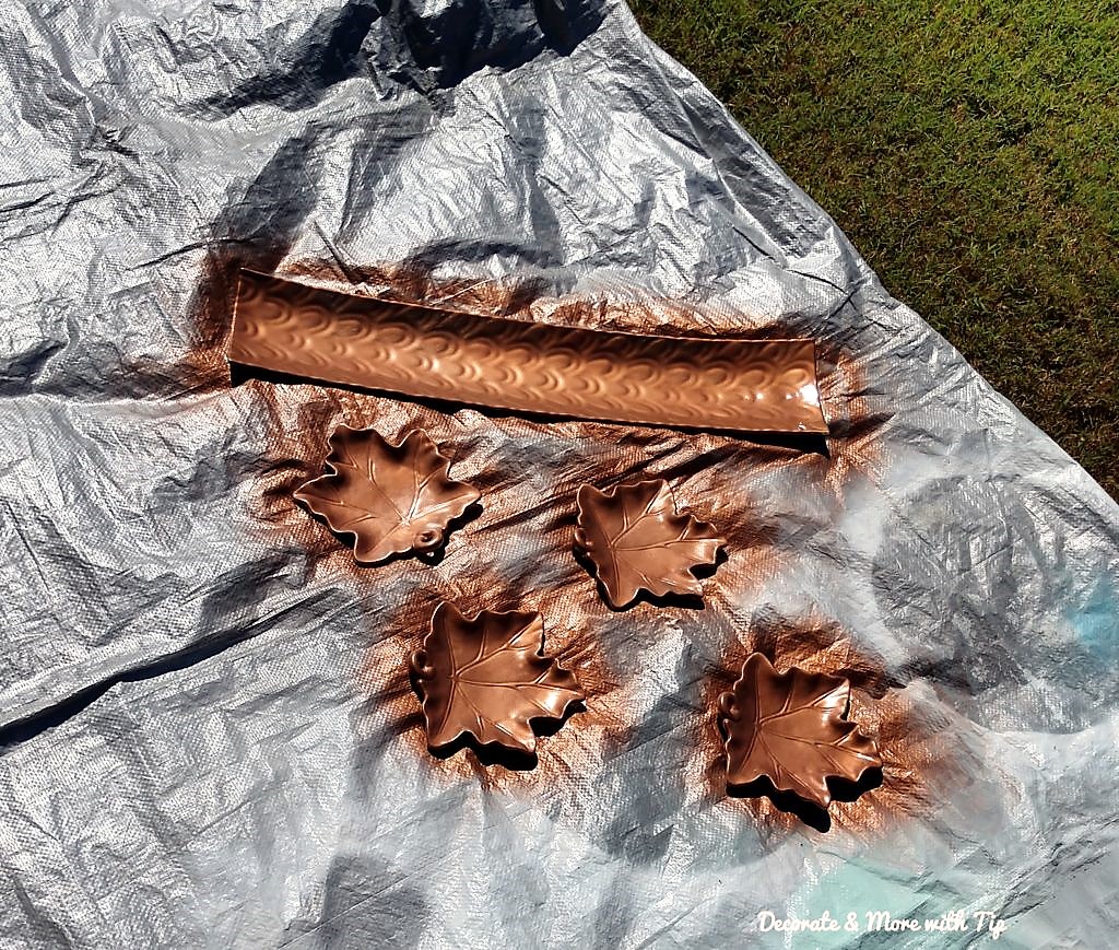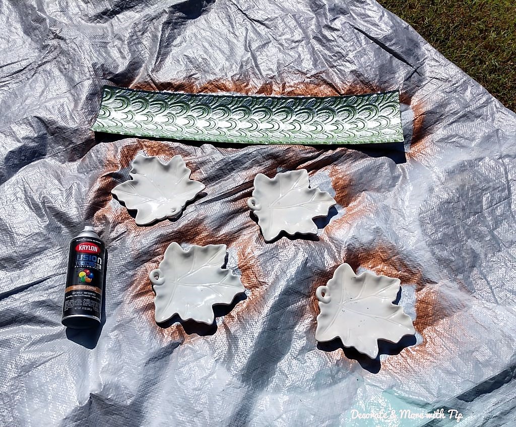 I am spray painting the slim plate copper along with the 4 leaf plates.  Using Krylon  All-In-One metallic copper for any type of surfaces.