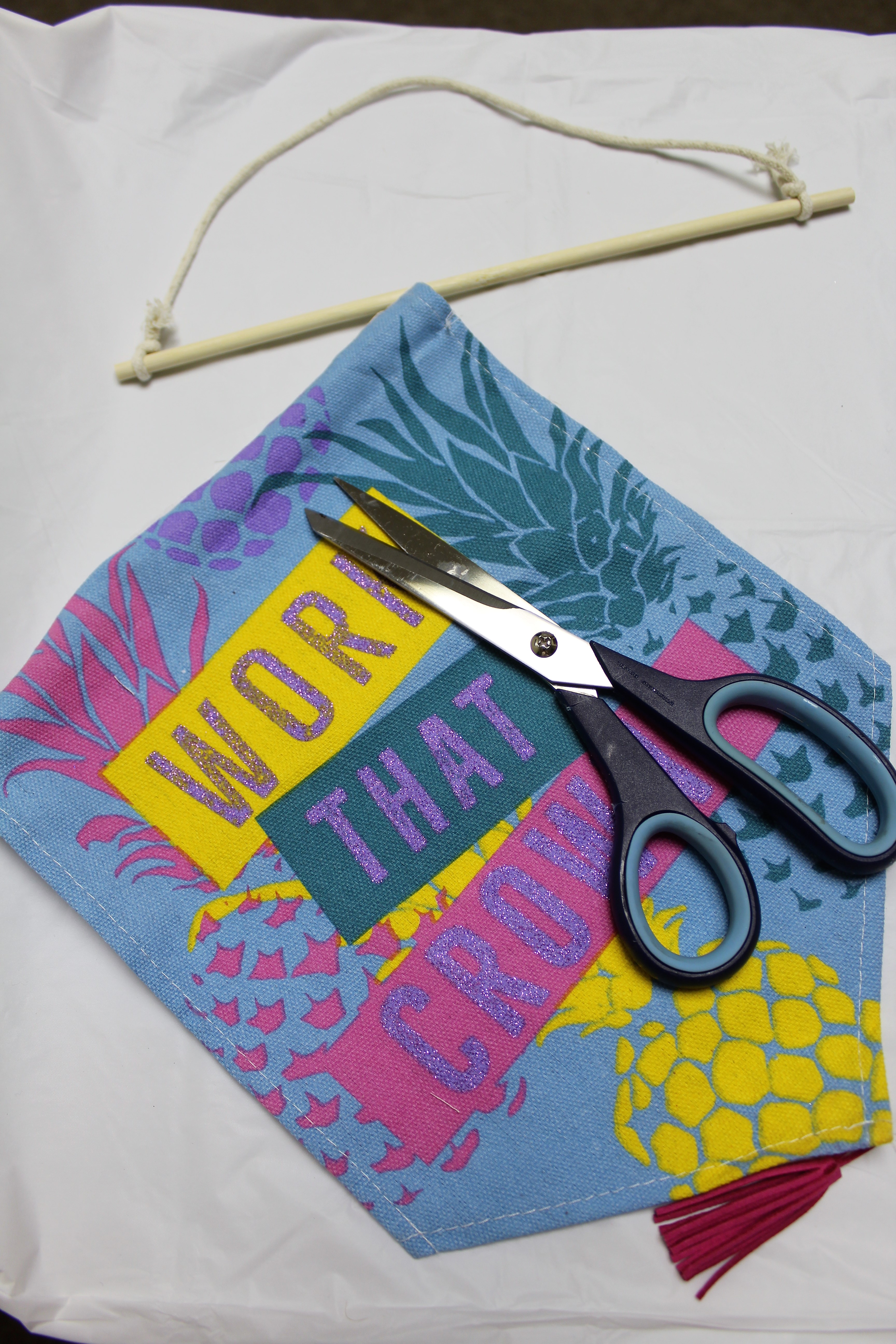 Take the Dollar Tree wall art and remove the flag from the dowel rod.