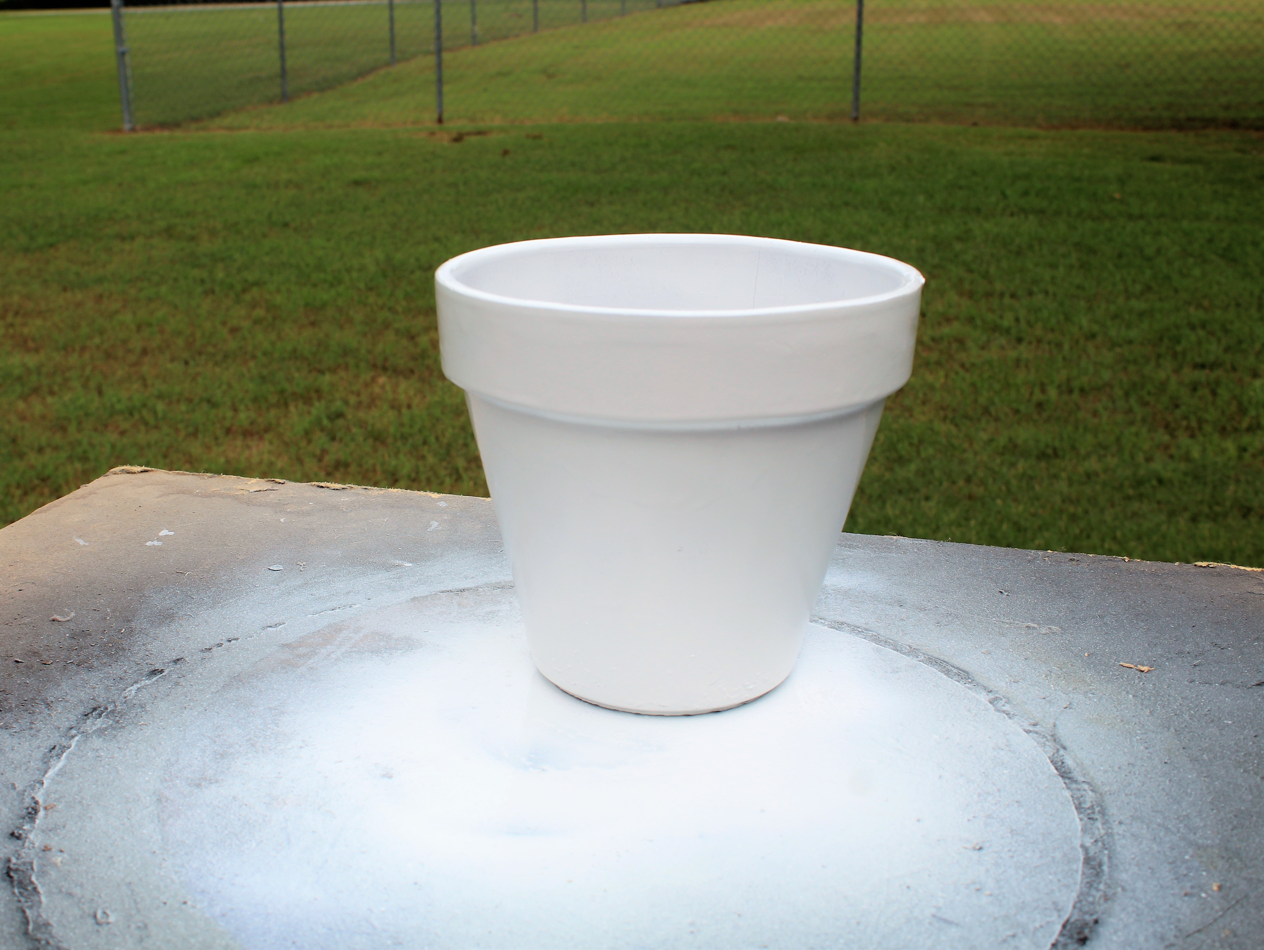 My clay pot has been around our home for awhile as you can tell. I took the clay pot and spray painted it white. It’s as good as new now. 🙂
