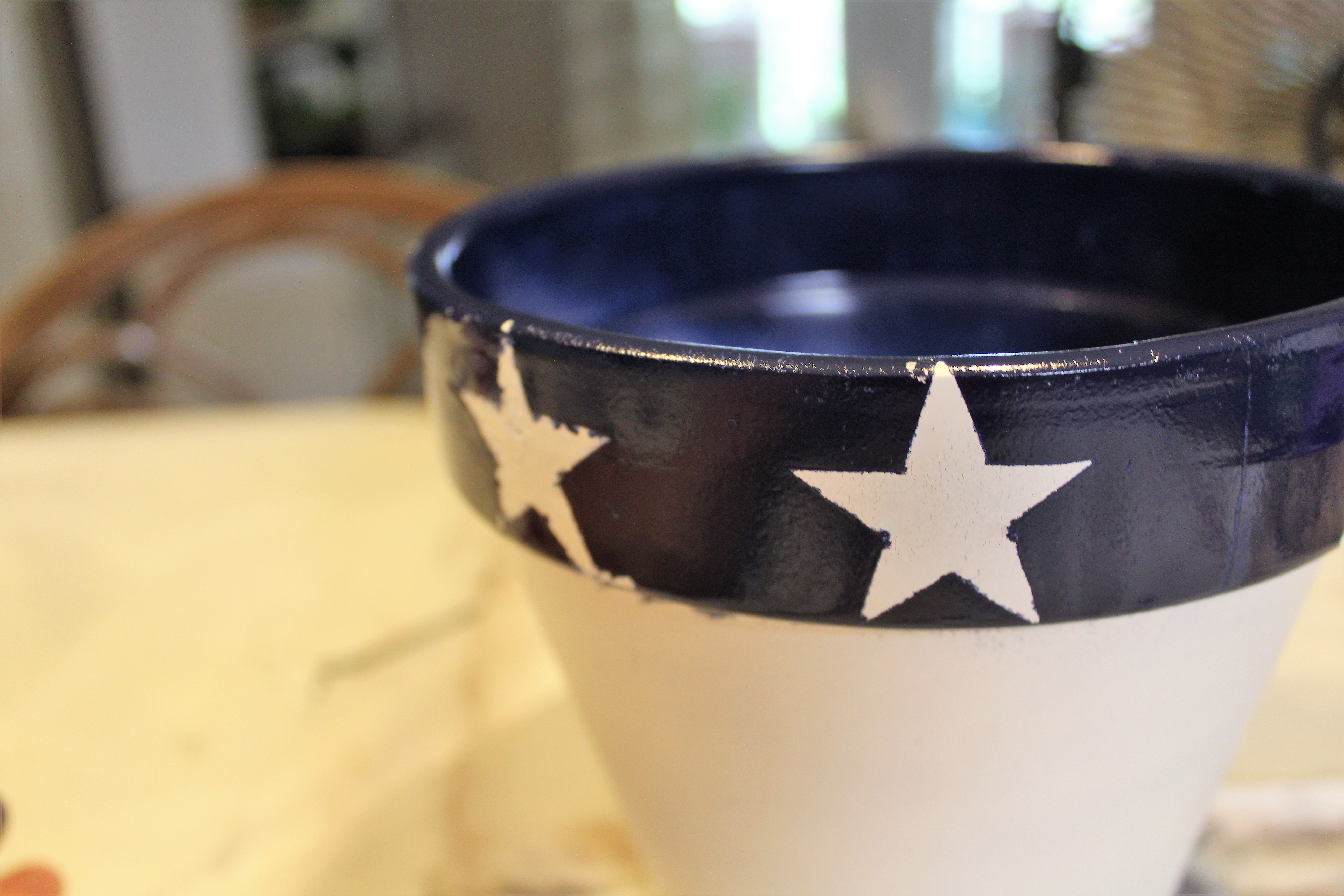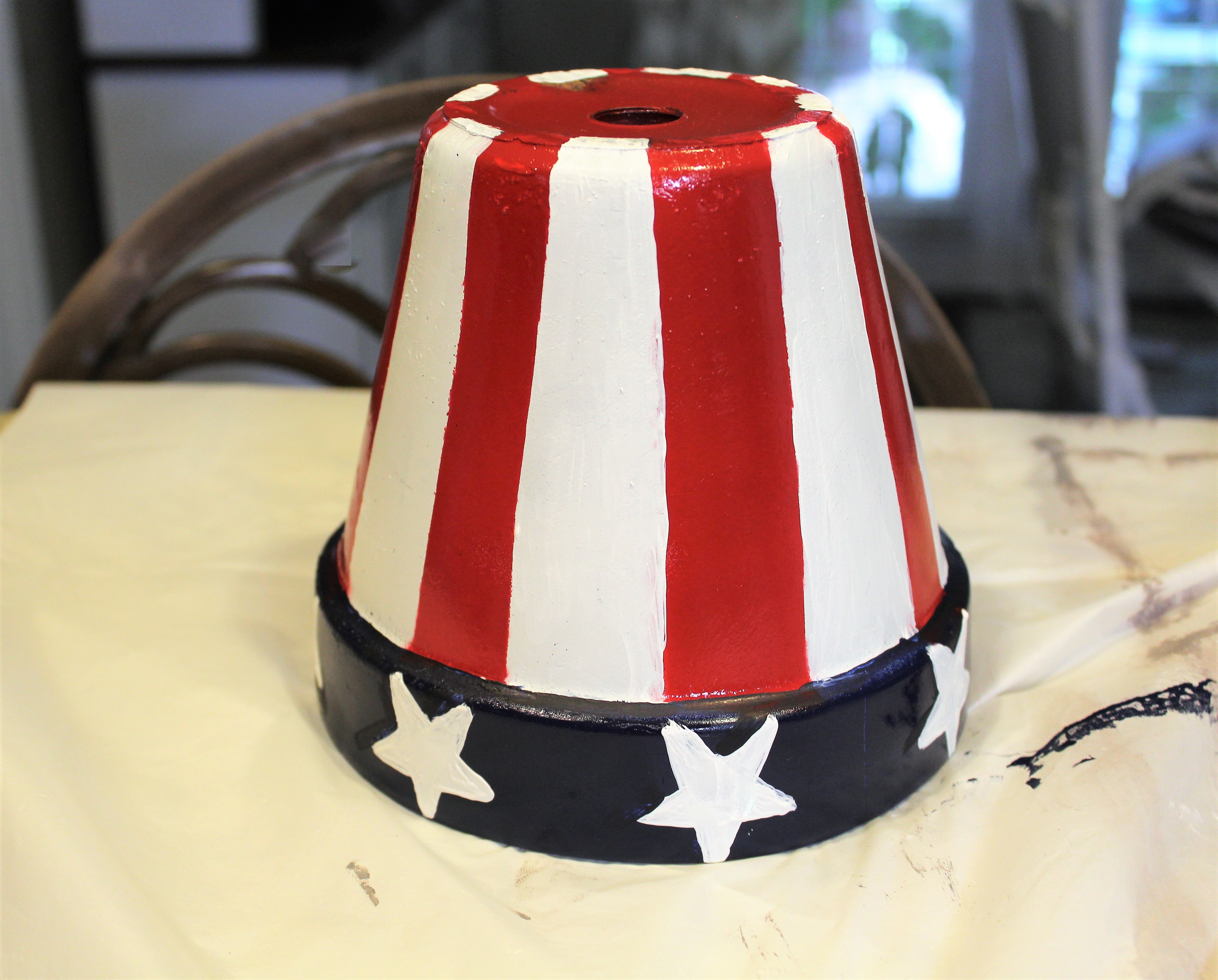 Let’s get started! The first one is a Stars and Stripes clay pot.