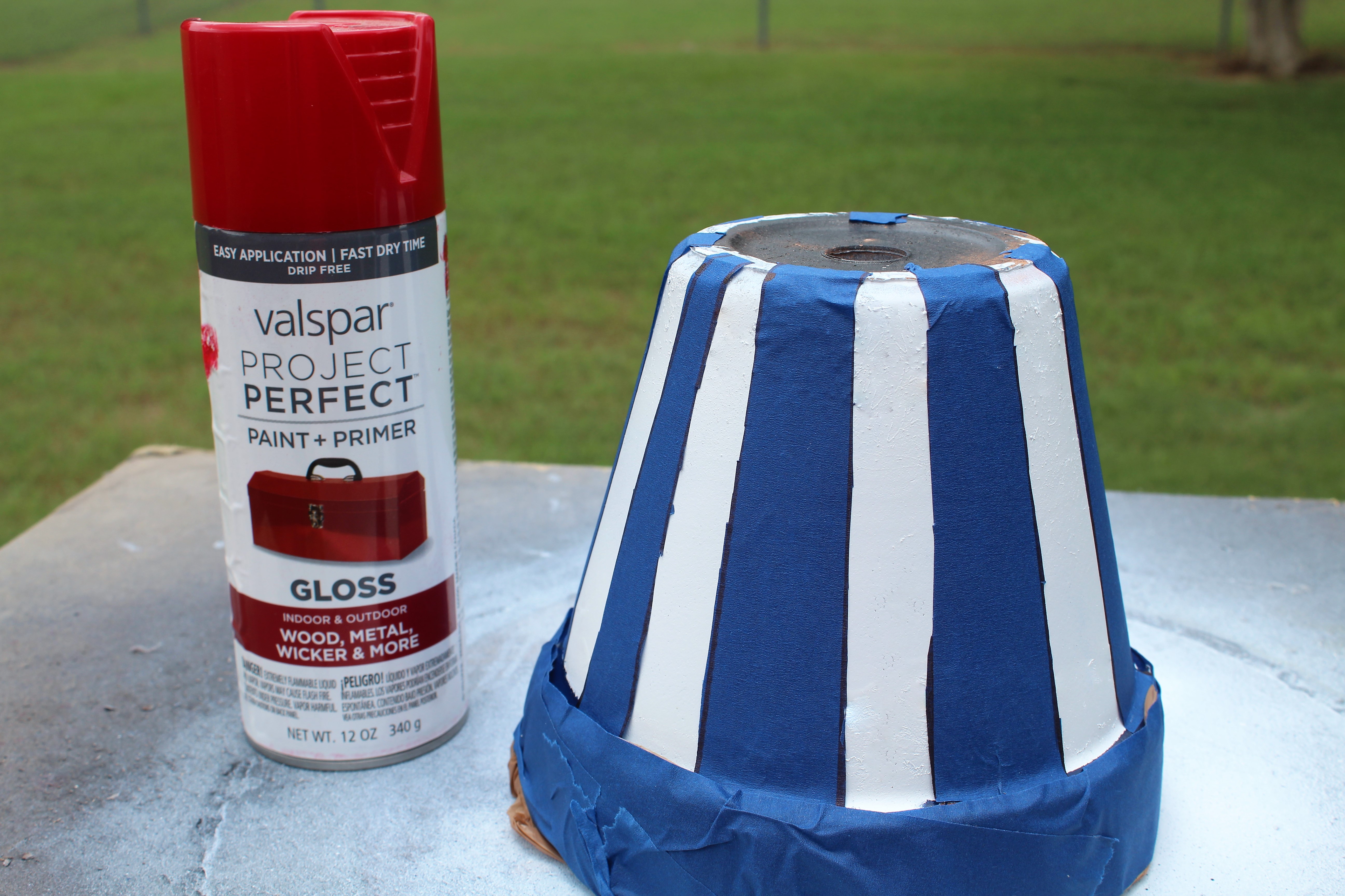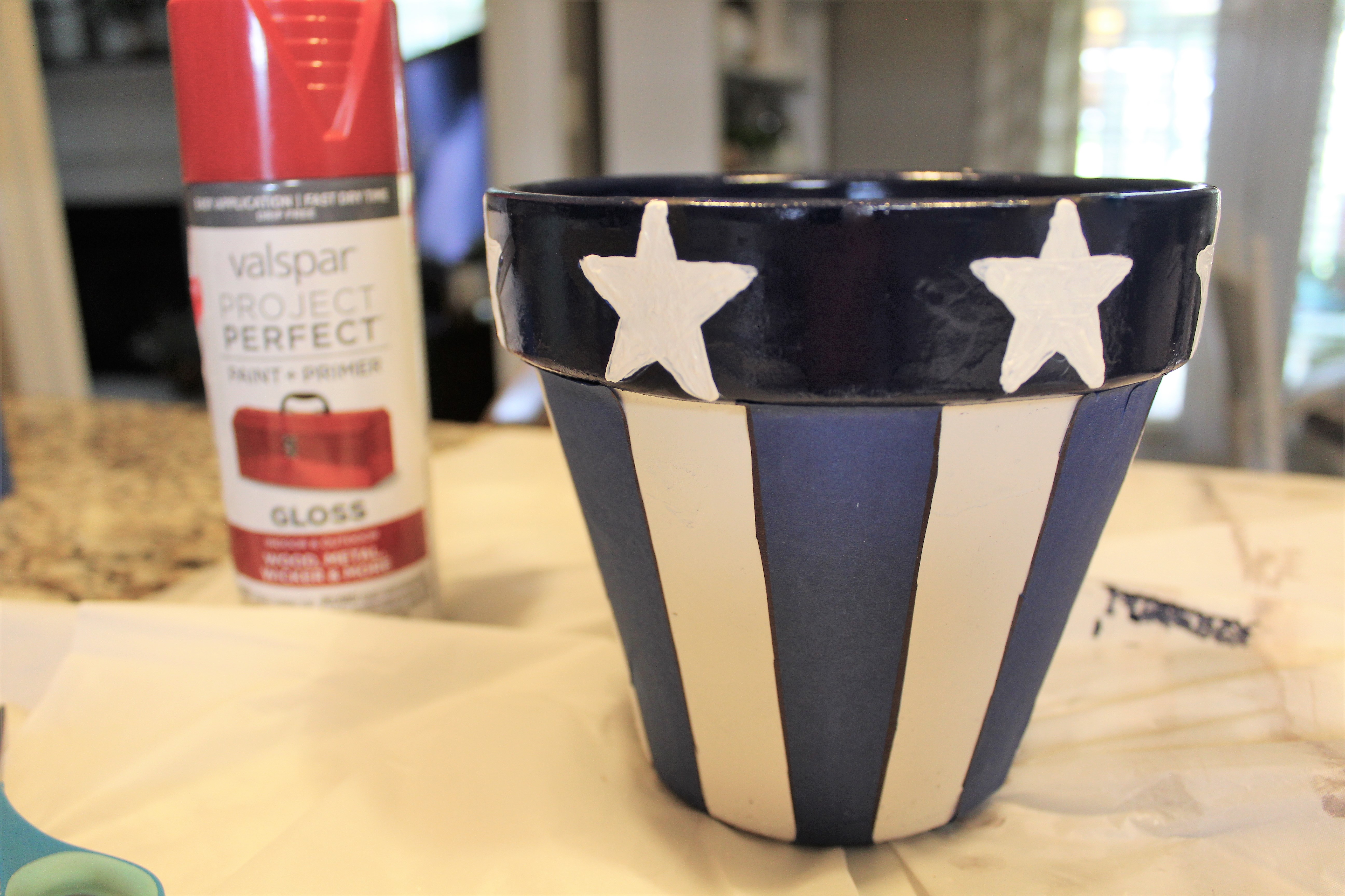 Spray two coats of clear sealer. And there you go, you have a great little spirit of America clay pot!