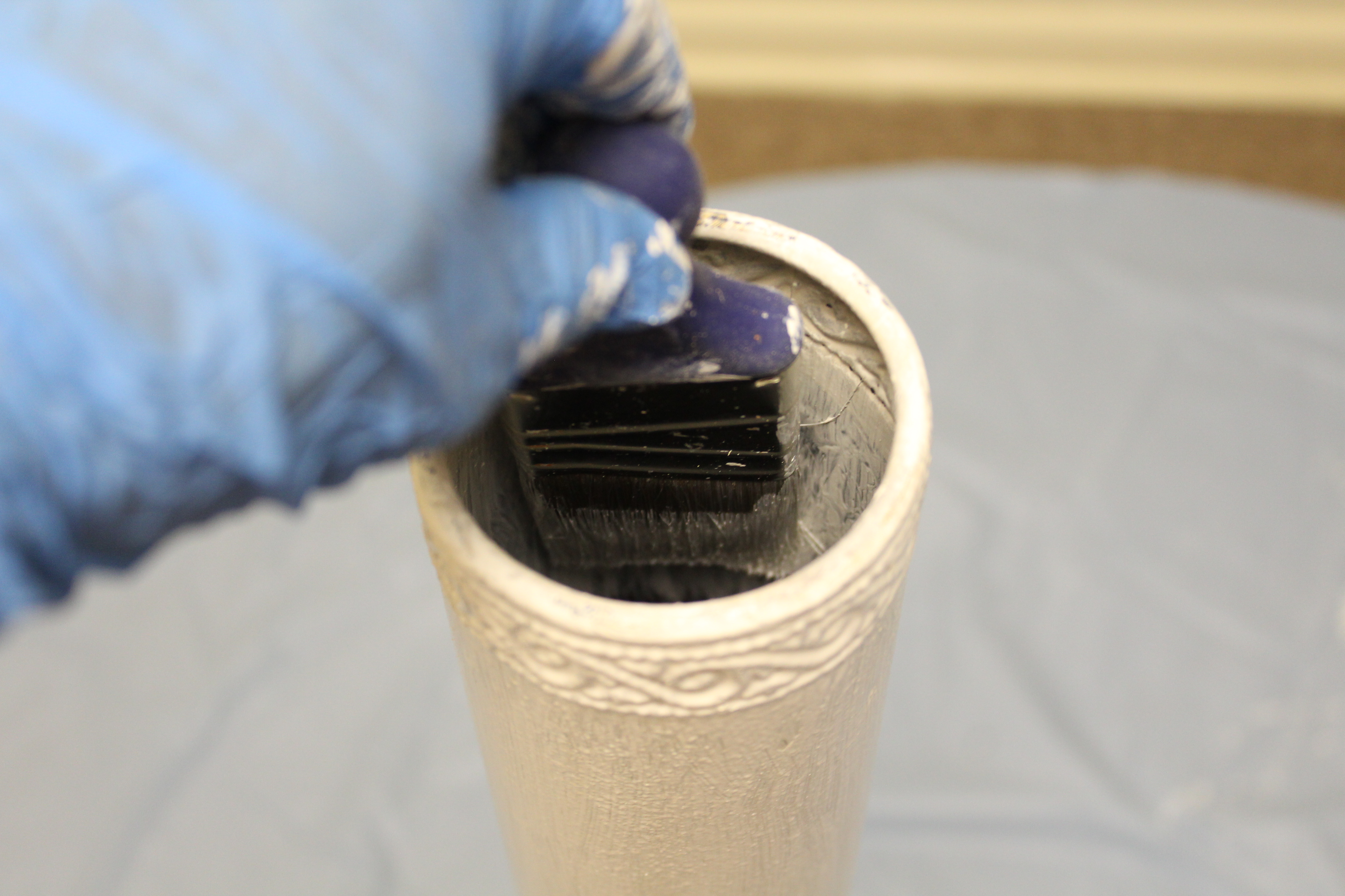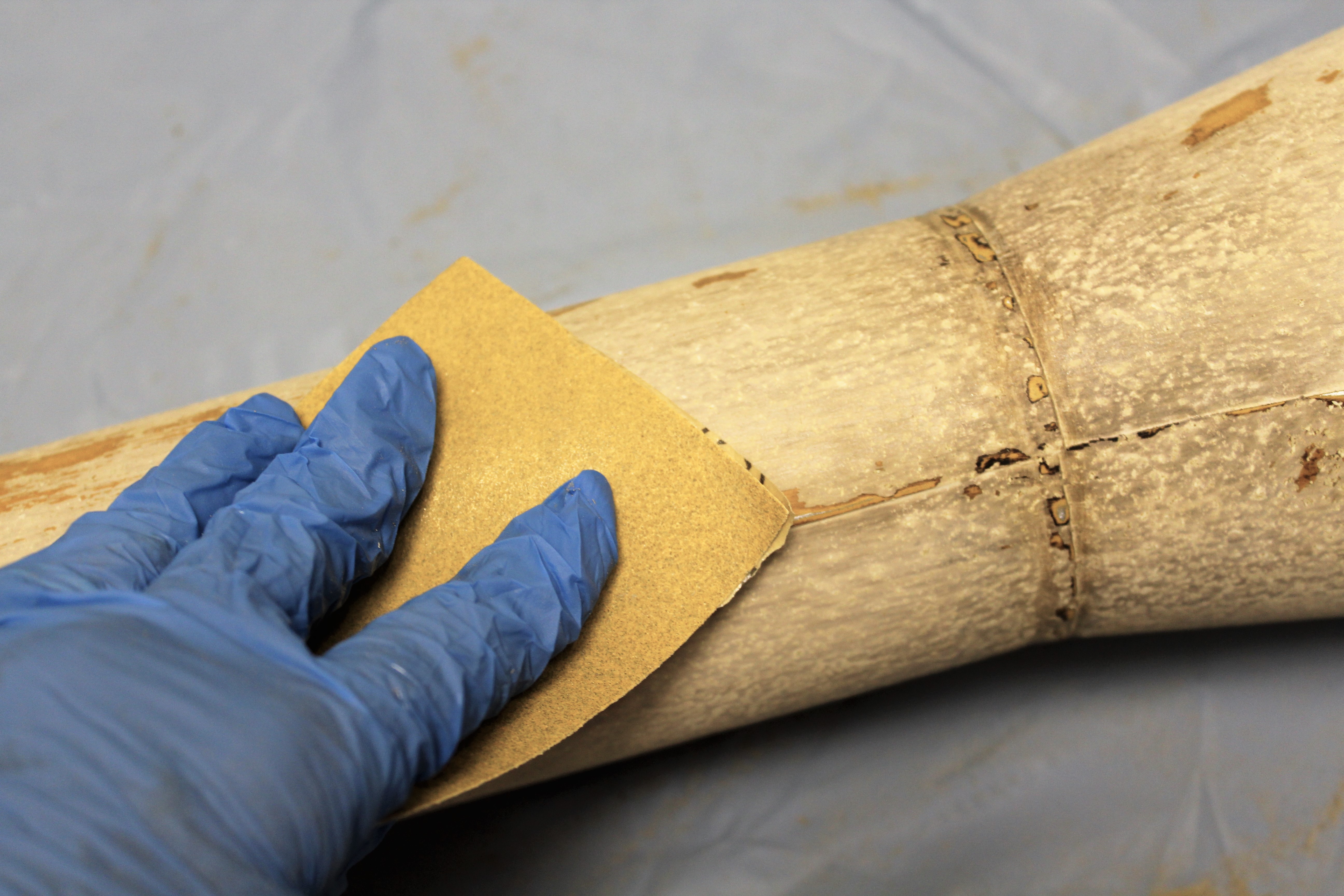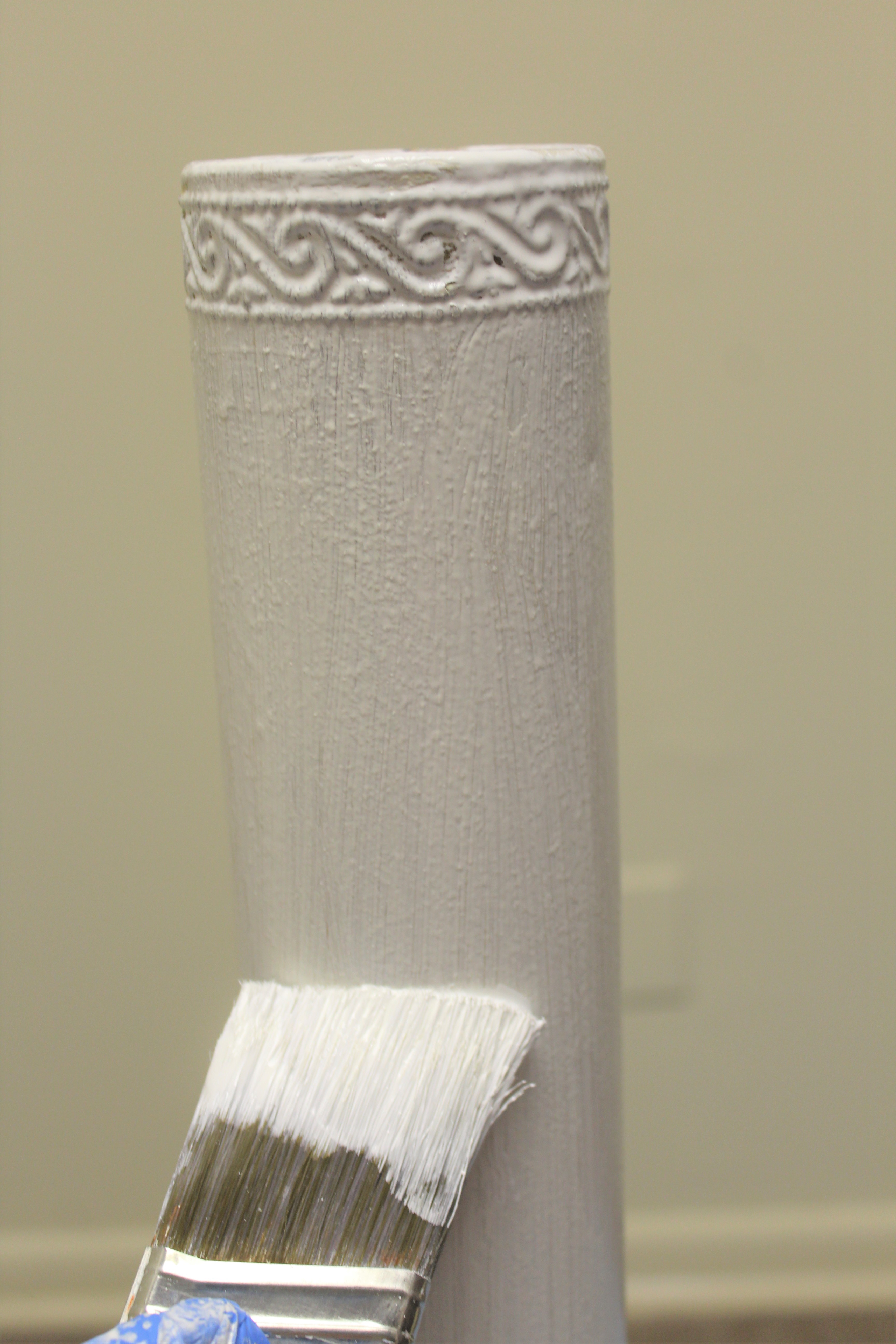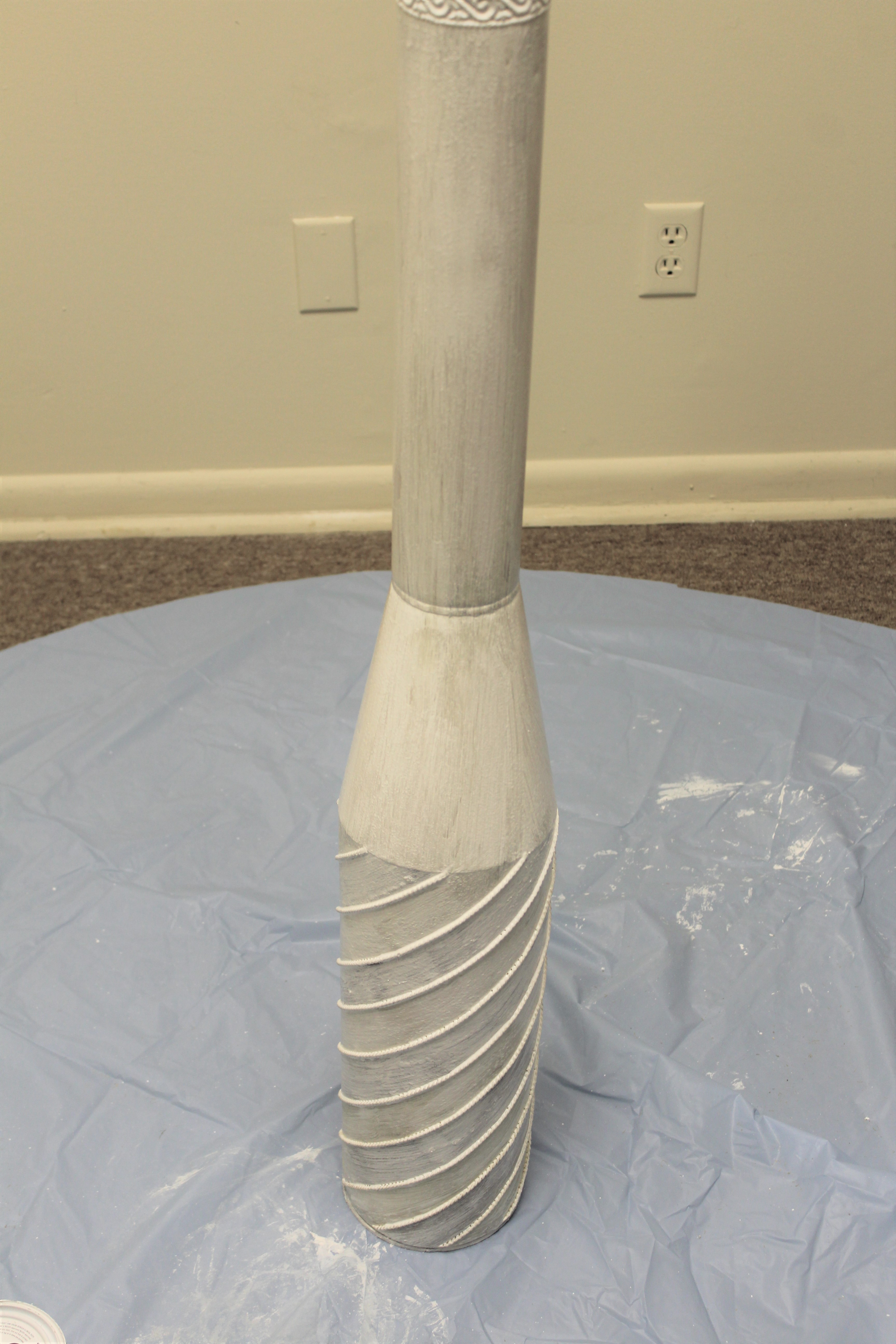 I sanded down the whole vase with 120 grit sandpaper.  After sanding, I wiped it down with a damp cloth.