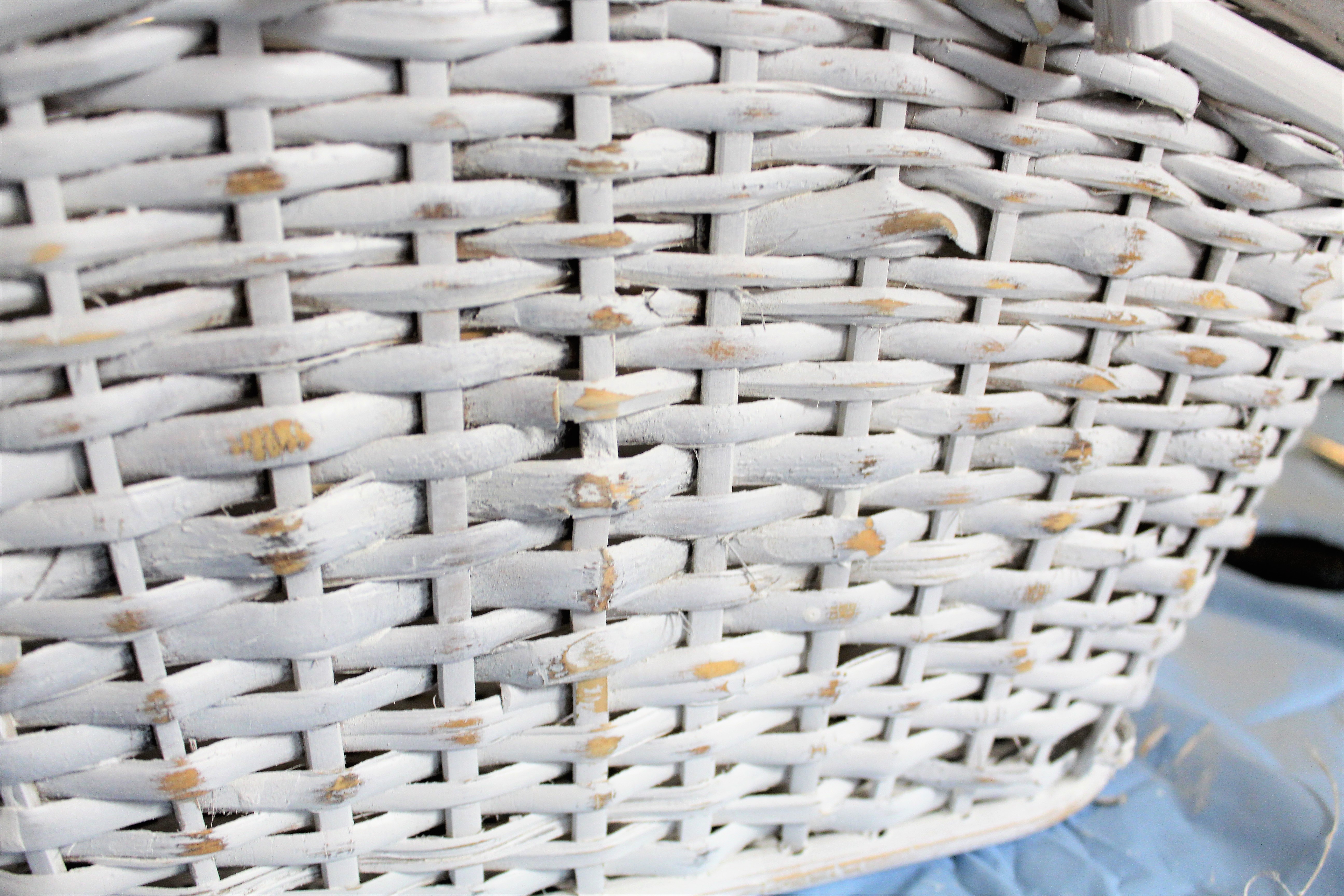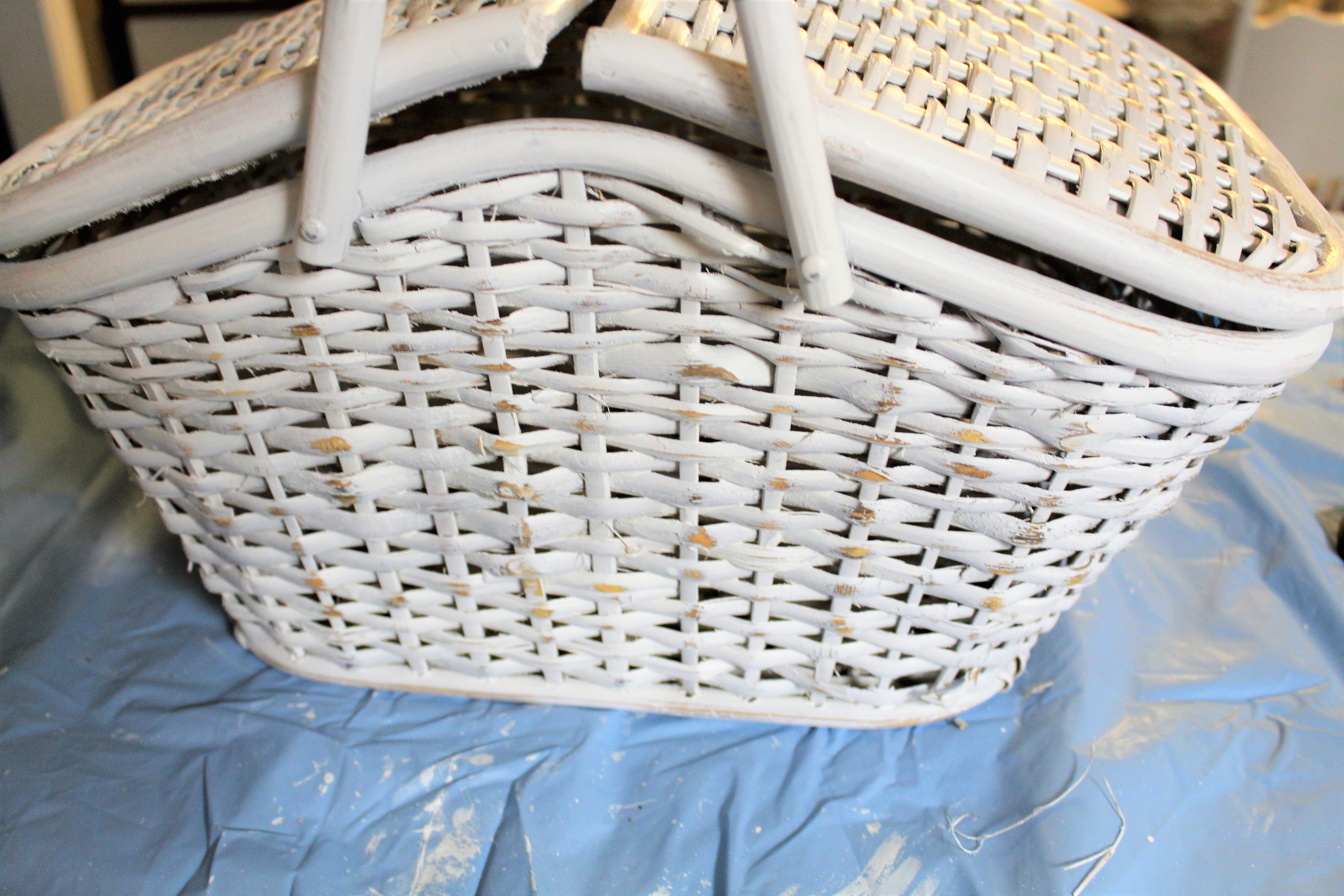 While the lining was out of the basket I gave the basket a coat of white paint and distressed it a little.