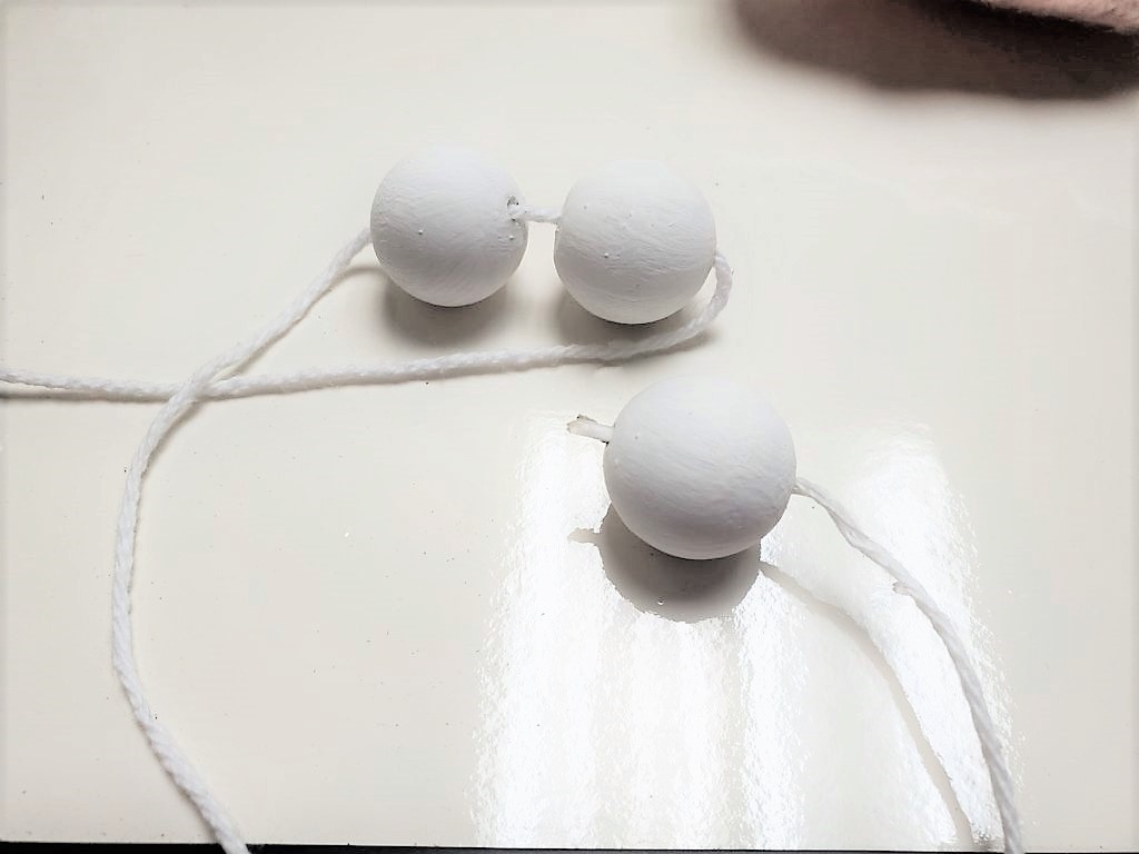 While the beads are drying I am going to remove the pompoms and hearts from the string.