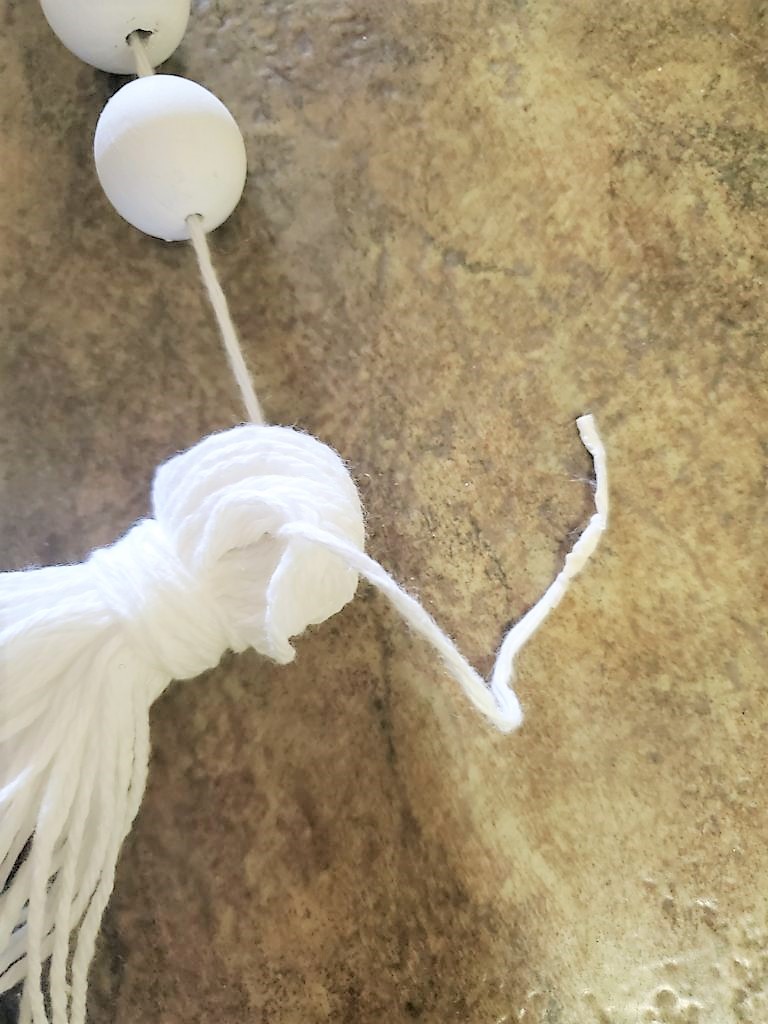 To make the ends finished I made two tassels with the white yarn and tied it to the ends of my garland.