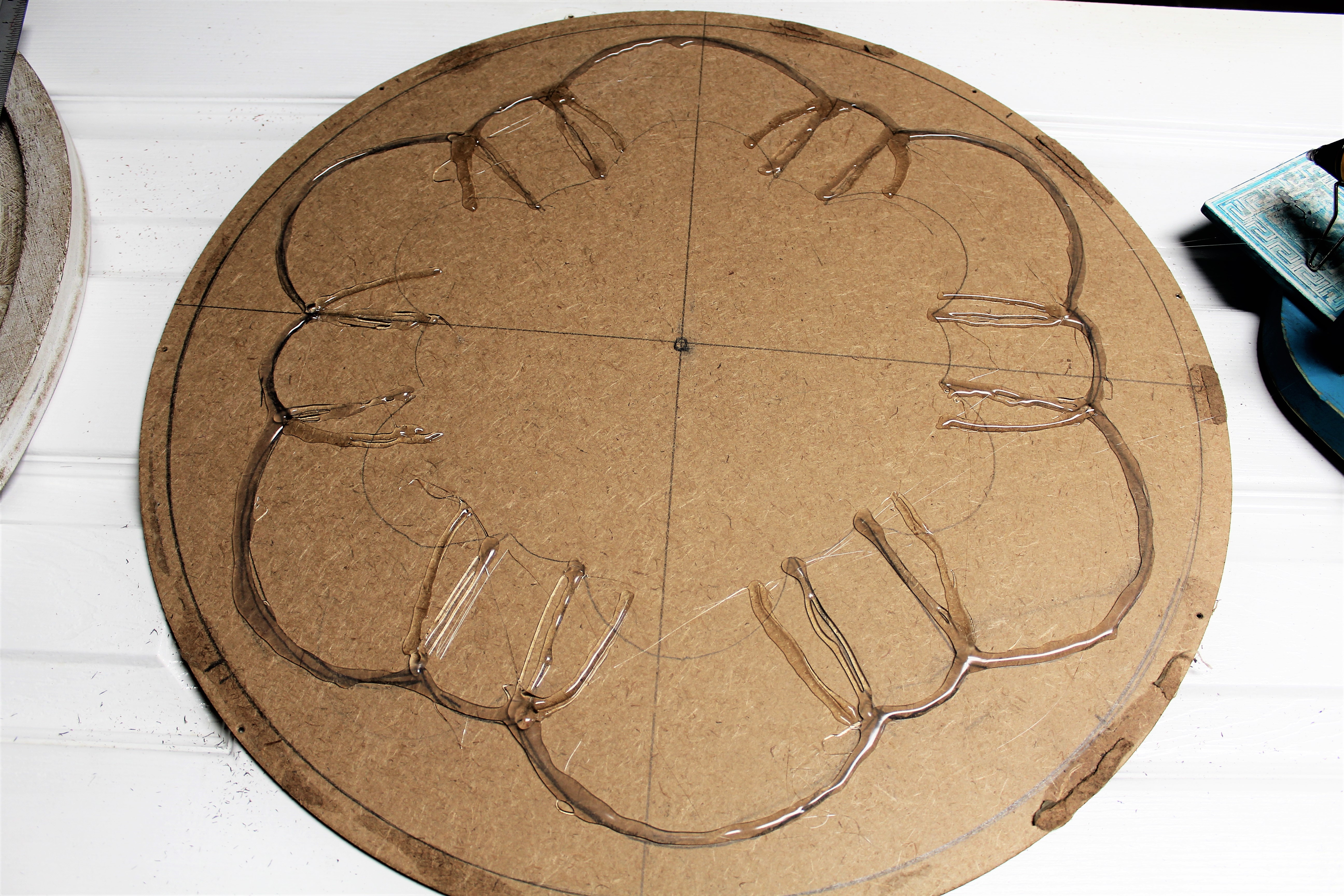 I applied a thick amount of hot glue to the outer flower lines. I went over the line a couple times.